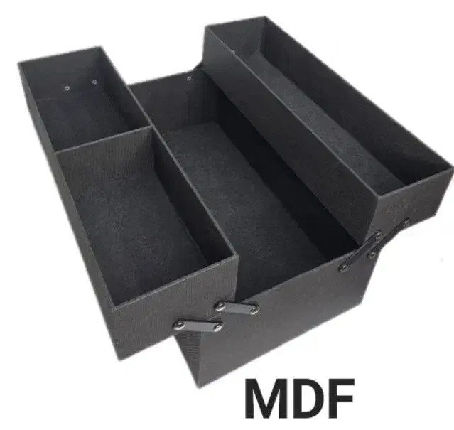 کیف لوازم ناخن کار و لوازم ارایشی مشکی مدل اسپانیا با طراحی خاص و کاربردی دارای باکس چوبی مجهز به یک محفظه بزرگ و دو مجفظه کوچک پله ای است که نظم و دسترسی اسان به وسایل را فراهم می کند انتخابی شیک برای استفاده روزه مره و رسمی .